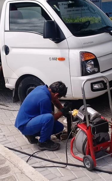 Solução completa para esgotos entupidos, resolvendo problemas de forma rápida, segura e com assistência via WhatsApp.